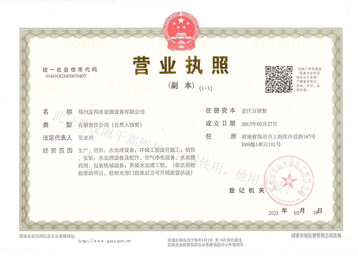 鄭州友邦水處理設(shè)備有限公司——營(yíng)業(yè)執(zhí)照