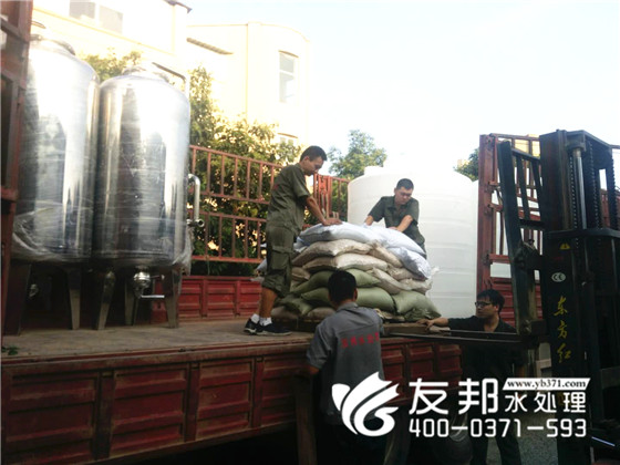 在這驕陽似火,揮汗如雨的季節(jié),大清早就是30多度的高溫,鄭州友邦的師傅們沒有松懈,依然在堅持裝車發(fā)貨。這是發(fā)往河北飼料廠的10噸純凈水設(shè)備。