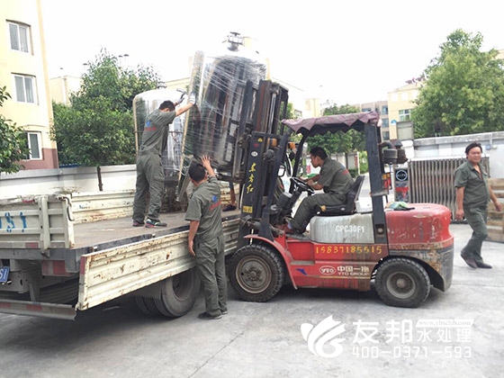 這套型號為YB-CJS-008的水處理設(shè)備正在裝車發(fā)貨,是發(fā)往新鄉(xiāng)某新材料有限公司。鄭州友邦在此次合作中為新鄉(xiāng)某新材料有限公司提供提供的8T/H純水系統(tǒng),完美的解決了對方在生產(chǎn)工藝用水方面的需求,成功幫助對方實(shí)現(xiàn)了新材料的生產(chǎn)。