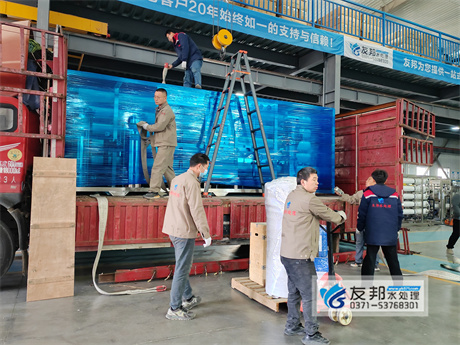 近日,鄭州友邦為新密洗滌行業(yè)量身定制的反滲透純水設(shè)備已順利裝車(chē)發(fā)貨。