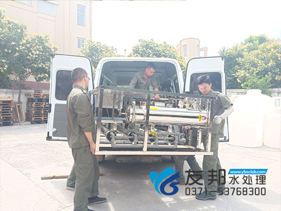 看,我們的師傅們正在往車上裝設備,這是發(fā)往新鄉(xiāng)20噸純凈水設備,設備占地面積大,但他整體的