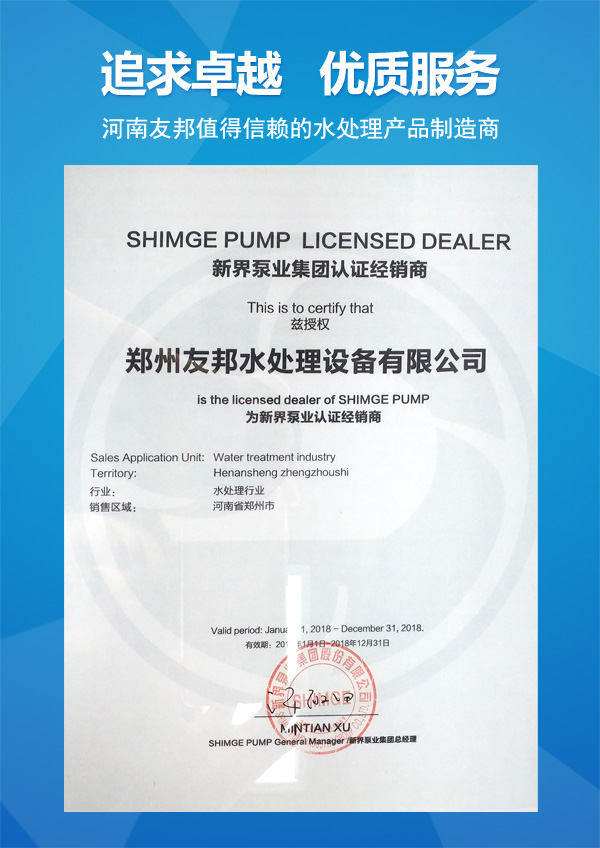 新界泵業(yè)授予友邦的證書