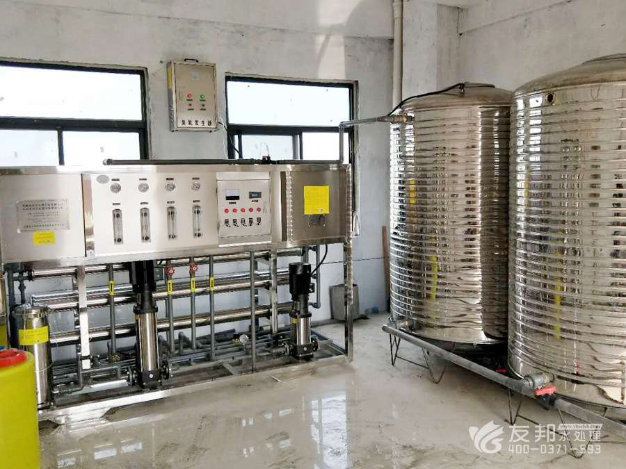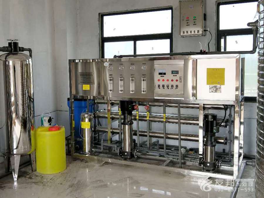 原水→原水加壓泵→多介質(zhì)過濾器→活性炭過濾器→軟水器→精密過濾器→第一級(jí)反滲透→純水箱→紫外線殺菌→微濾過濾器→用水點(diǎn)