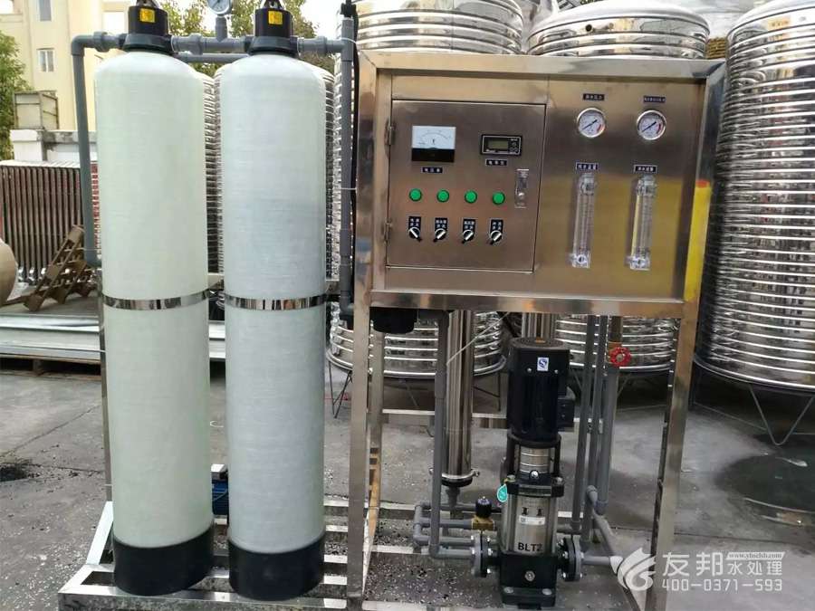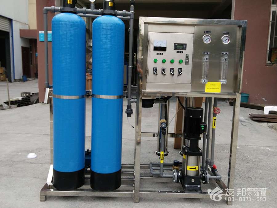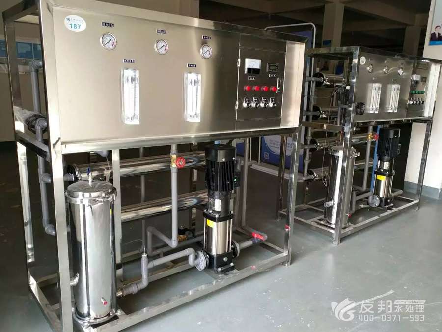 1、原水→原水加壓泵→多介質(zhì)過(guò)濾器→活性炭過(guò)濾器→阻垢裝置→精密過(guò)濾器→一級(jí)反滲透→中間水箱→中間水泵→陰陽(yáng)離子交換器→純化水箱→純水泵→紫外線殺菌器→微孔過(guò)濾器→用水點(diǎn)